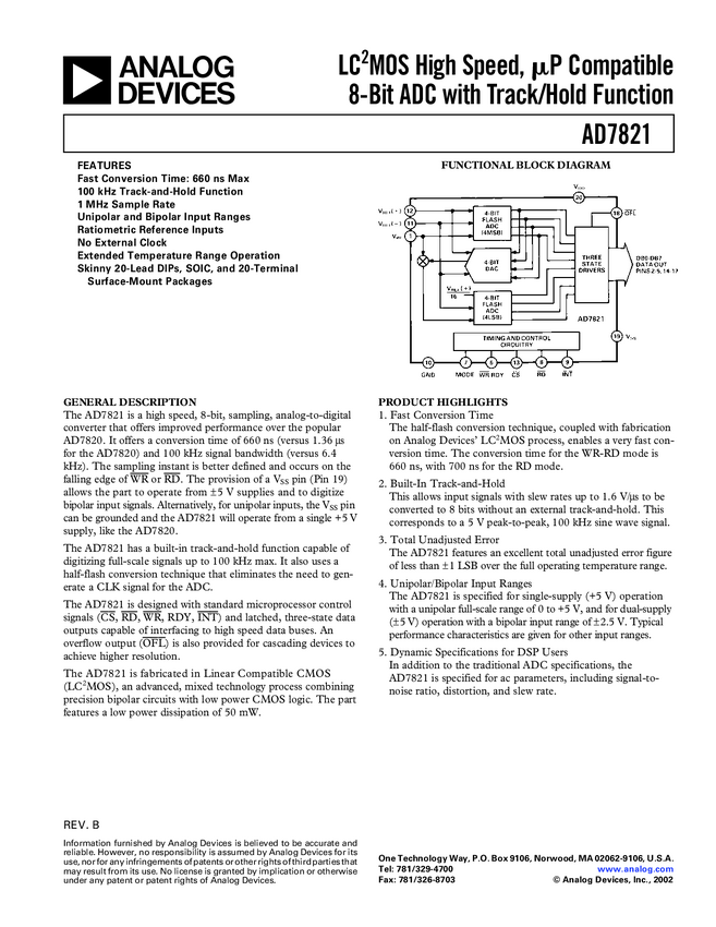 AD7821 High Speed, P-Compatible, CMOS, 8-Bit Sampling ADC