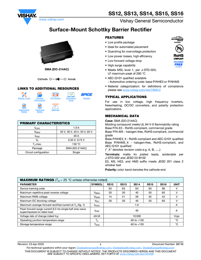 SS14 Surface-Mount Schottky Barrier Rectifier