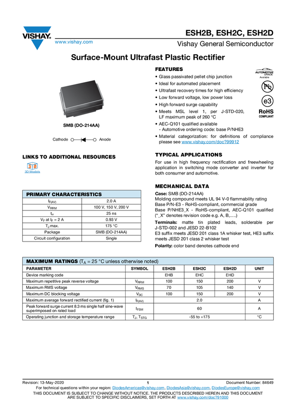 ESH2C Surface-Mount Ultrafast Plastic Rectifier