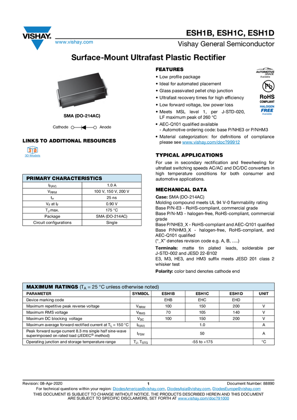 ESH1B Surface-Mount Ultrafast Plastic Rectifier