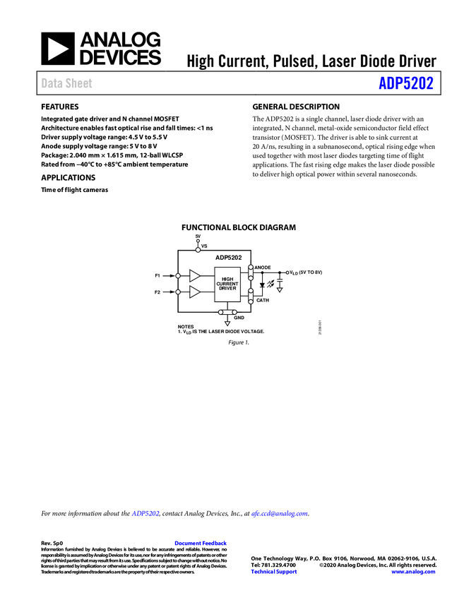 ADP5202 High Current, Pulsed, Laser Diode Driver