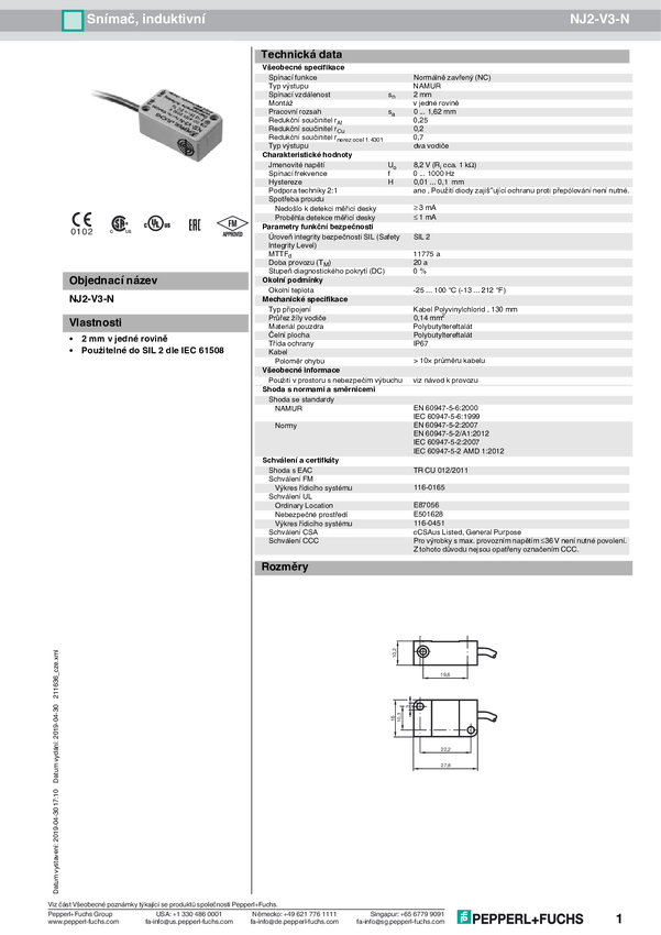 70133090 Pepperl+Fuchs Czujnik indukcyjny NAMUR NJ2-V3-N 12xG1xxD