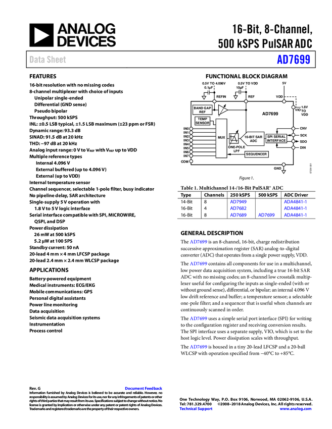 AD7699 16-Bit, 8-Channel, 500 kSPS PulSAR ADC