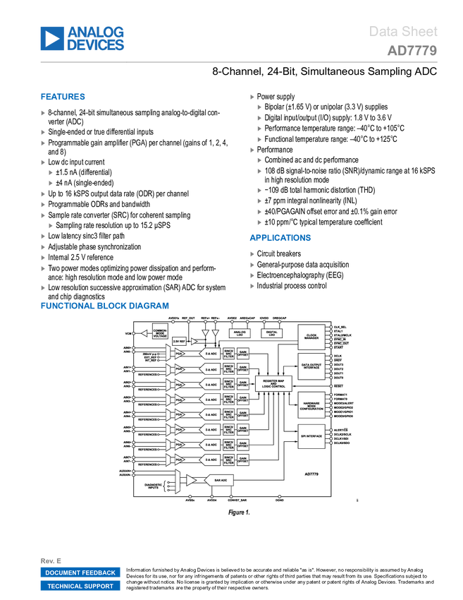 AD7779 8-Channel, 24-Bit, 16 kSPS Simultaneous Sampling ADC