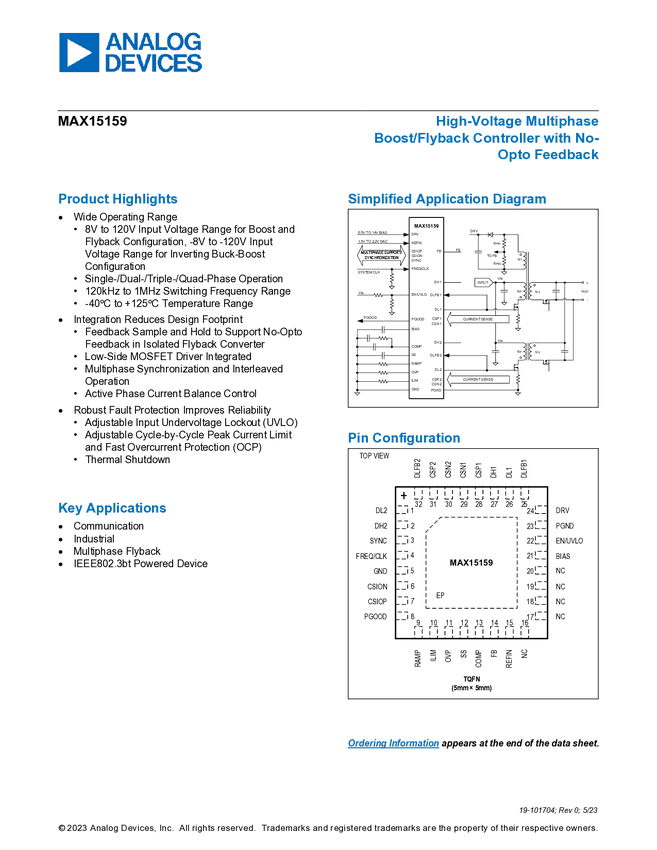 MAX15159 High-Voltage Multiphase Boost/Flyback Controller with No-Opto Feedback
