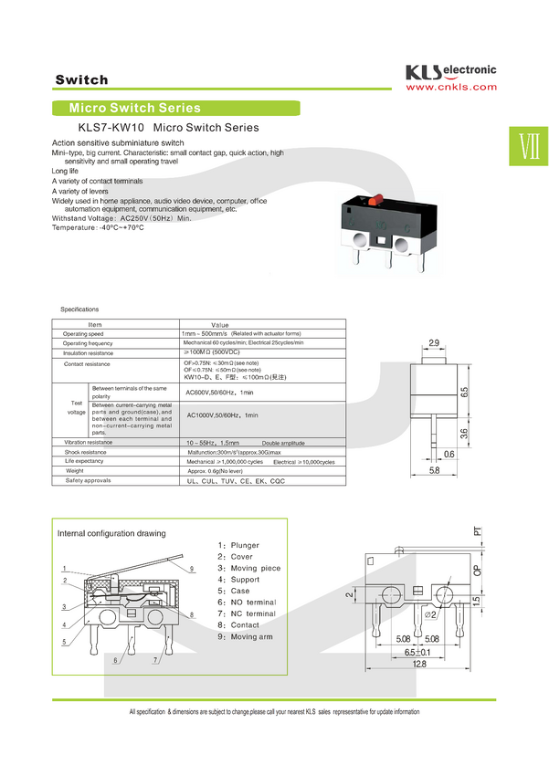 Mikroprzełącznik; WK325; dźwignia; 13mm; 1NO+1NC; mini; 1A; 125V AC; KW10-Z2P150; MSW-22; KLS; RoHS