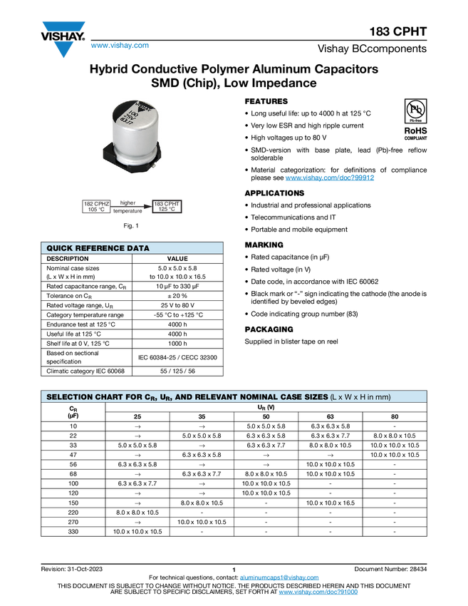 183 CPHT Hybrid Conductive Polymer Aluminum Capacitors SMD (Chip), Low Impedance