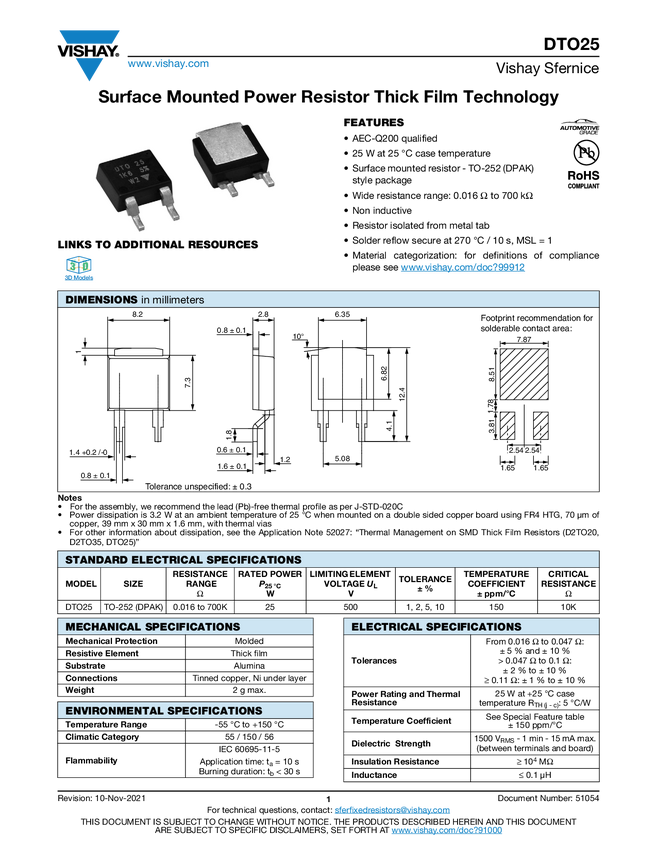 DTO25 Surface Mounted Power Resistor Thick Film Technology