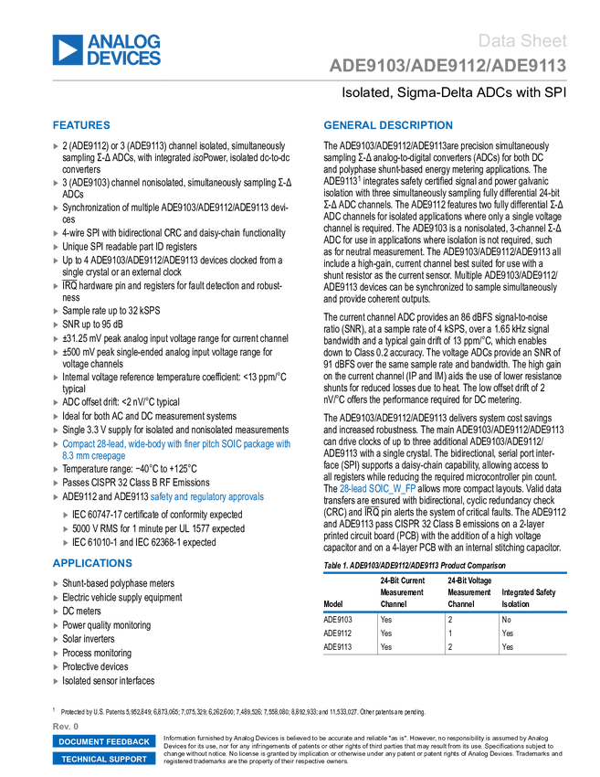 ADE9113 Isolated, Sigma-Delta ADCs with SPI