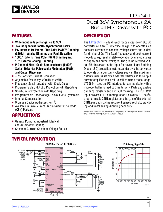 LT3964-1 Dual 36V Synchronous 2A Buck LED Driver with IC