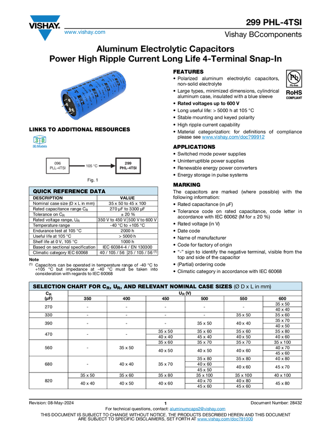 299 PHL-4TSI Aluminum Electrolytic Capacitors Power High Ripple Current Long Life 4-Term...