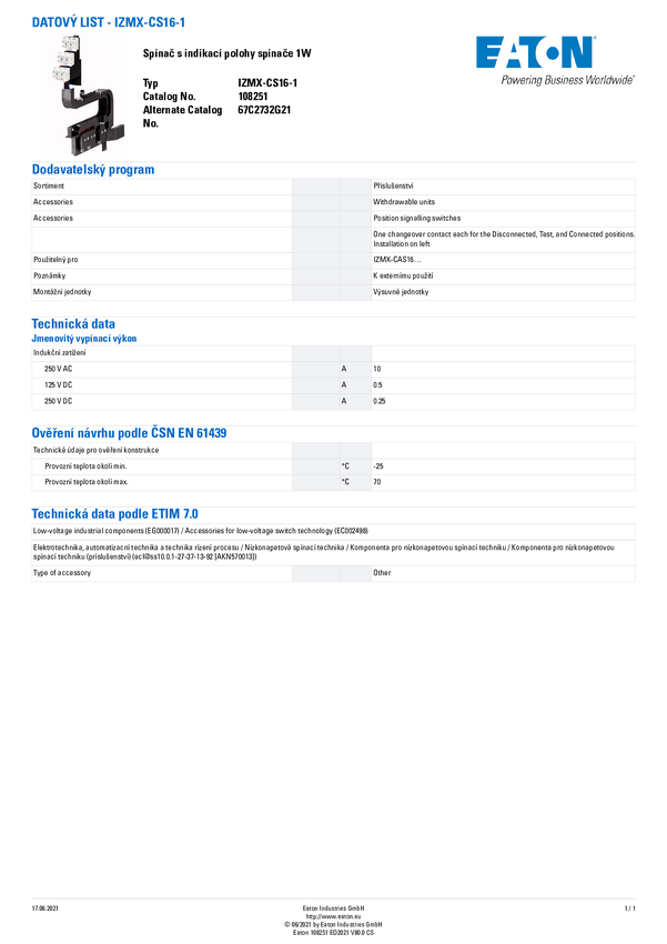 108251 Przełącznik sygnalizacji Eaton IZMX-CS16-1 1 szt.