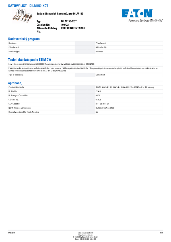 100423 Element wymienny stycznika Eaton DILM150-XCT 1 szt.