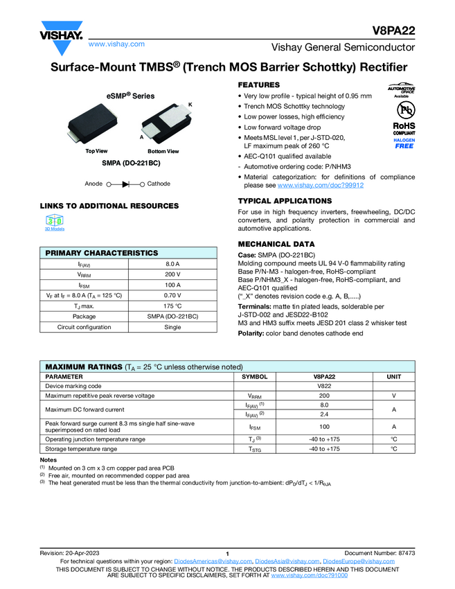 V8PA22 Surface-Mount TMBS® (Trench MOS Barrier Schottky) Rectifier