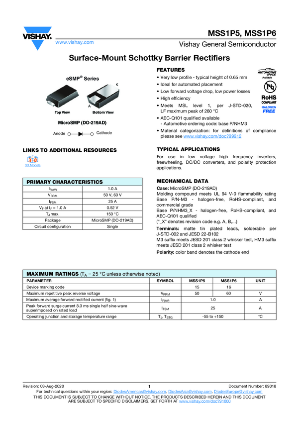 MSS1P6 Surface-Mount Schottky Barrier Rectifiers