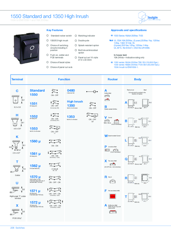Przełącznik; C1561ALAAA; ROCKER; ON-(ON); 16A; 250VAC; czarny; 1 pozycja; 30x22mm; BULGIN; RoHS