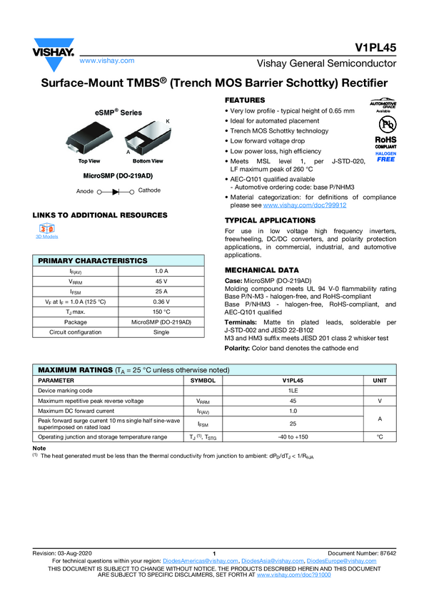 V1PL45 Surface-Mount TMBS® (Trench MOS Barrier Schottky) Rectifier
