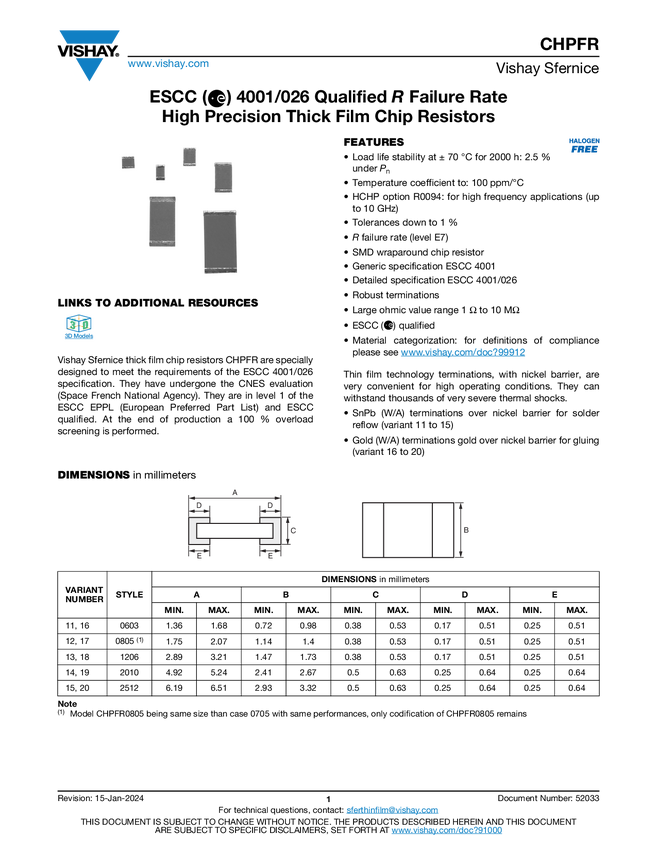 CHPFR ESCC 4001/026 Qualified R Failure Rate High Precision Thick Film Chip Resis...