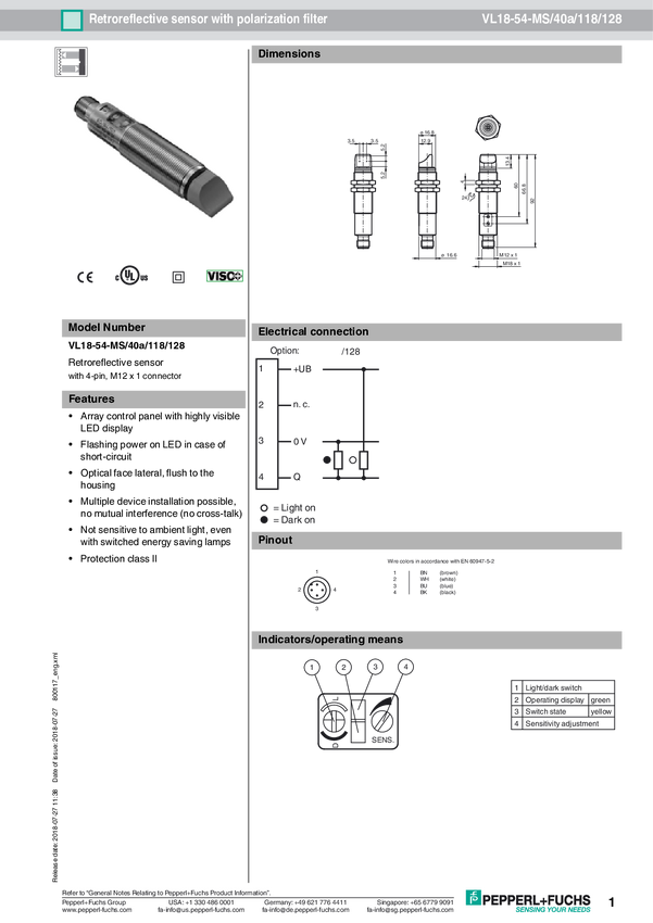 800117 Czujnik fotoelektryczny Pepperl+Fuchs VL18-54-MS/40a/118/128 80...