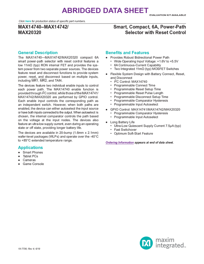 MAX14741, MAX20320, MAX14742