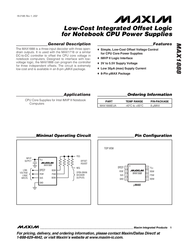 MAX1888 Low-Cost Integrated Offset Logic for Notebook CPU Power Supplies