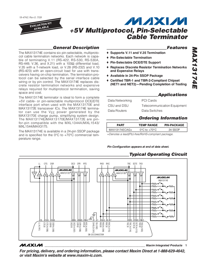 MAX13174E +5V Multiprotocol, Pin-Selectable Cable Terminator