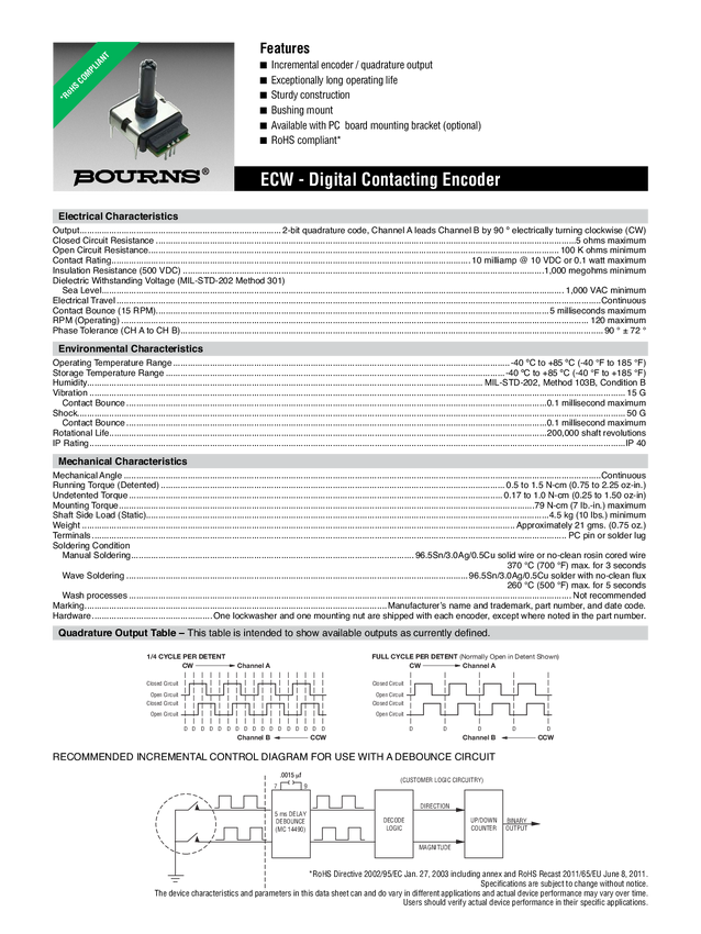 Impulsator; ECW1J-B24-BC0024L; enkoder stykowy; ciągły; 2 kanały; 24 impulsy; 28,5x22mm; oś 6,35mm; THT; BOURNS; RoHS