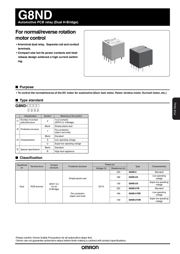 Przekaźnik; G8ND-2U; elektromagnetyczny; SPDT x2; Ucewki 12V DC; 25A; 225Ohm; THT; na PCB; OMRON; RoHS