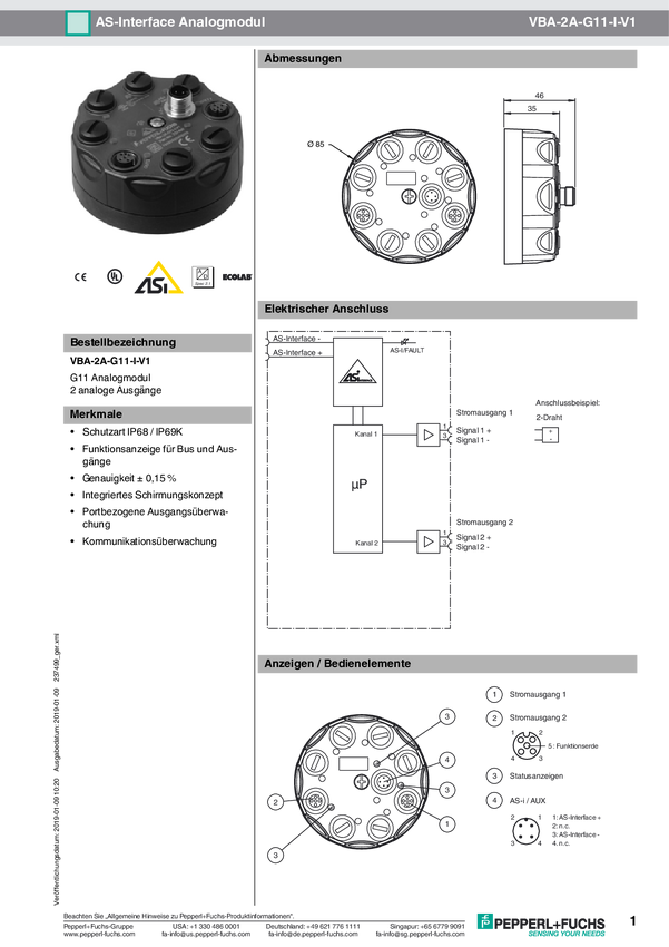 Rozdzielacz czujnik / element wykonawczy, aktywny Pepperl+Fuchs VBA-2A-G11-I-V1 237499 1 szt.