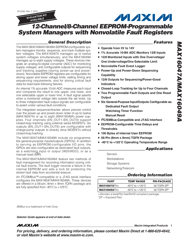 MAX16047A 12-Channel/8-Channel EEPROM-Programmable System Managers with Nonvolatile F...