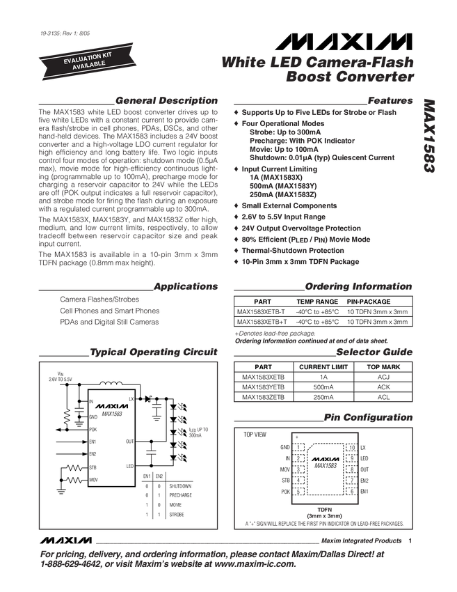 MAX1583 White LED Camera-Flash Boost Converter
