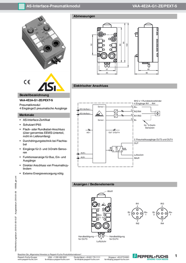 Rozdzielacz czujnik / element wykonawczy, aktywny Pepperl+Fuchs VAA-4E2A-G1-ZE/PEXT-S 130939 1 szt.