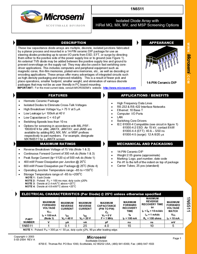 1N6511-Rectifier, JAN1N6511-Rectifier, JANTXV1N6511-Rectifier