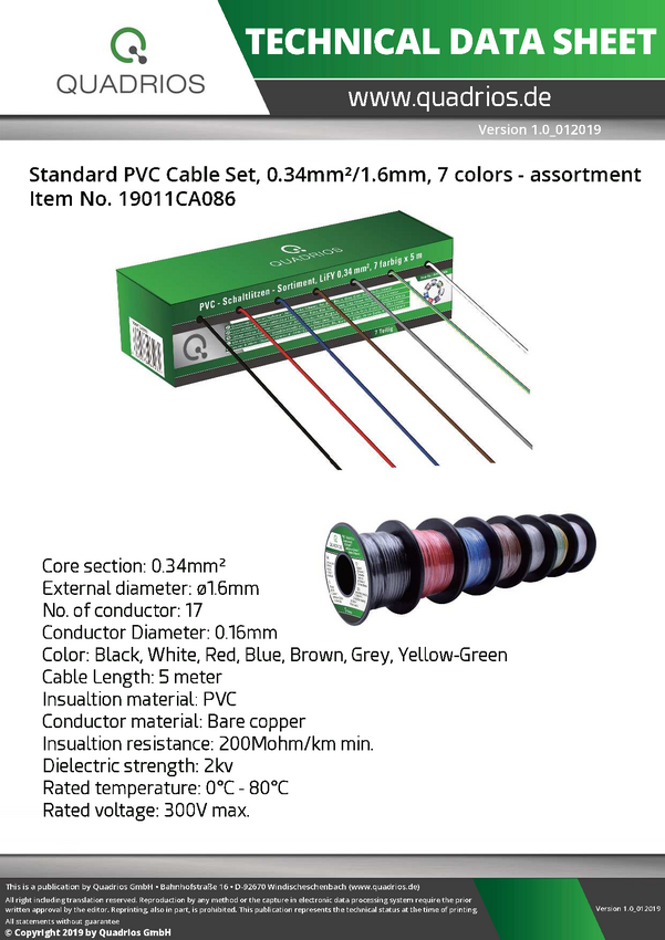 Quadrios 19011CA086 Przewód linka LiFY 1 x 0.34 mm² niebieski, brązowy, szary, czerwony, czarny, biały, żółto-zielony 35