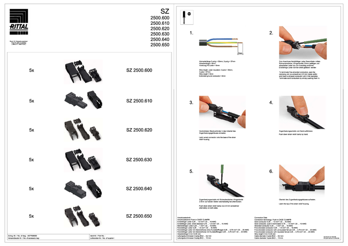 Rittal 2500610 Złącze męskie sieciowe SZ 2500.610, PIN: 2, 24 V/DC, 1 szt.