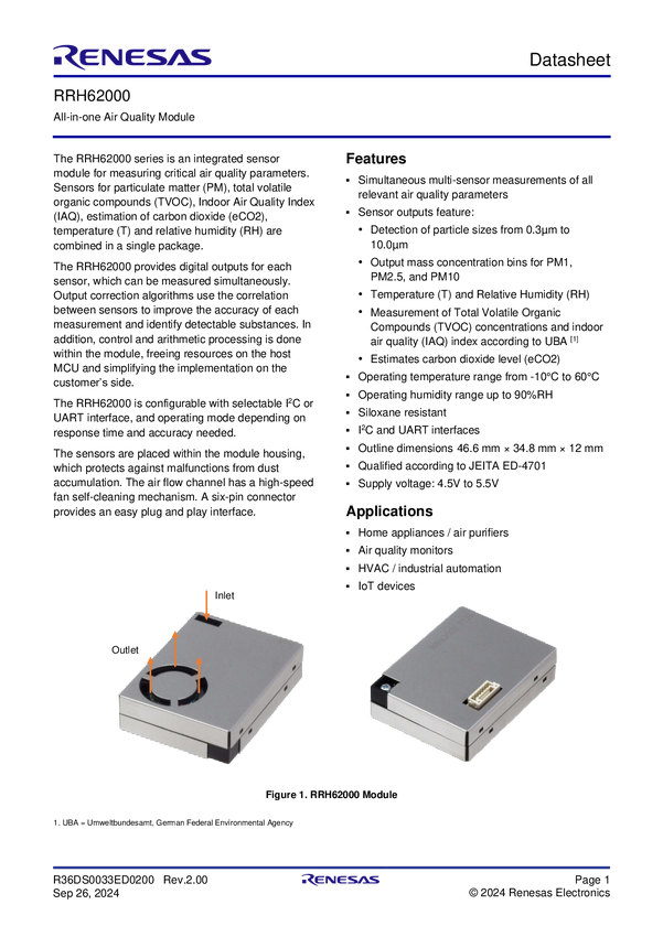 RRH62000 All-in-One Integrated Sensor Module for PM2.5, RHT, TVOC, and eCO2 Detectio...