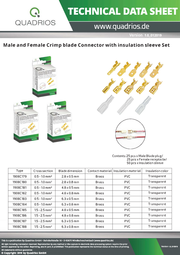 Quadrios 1908C186 Zestaw złączy zaciskanych 1.50 mm² 2.50 mm² mosiądz, przeźroczysty 100 części