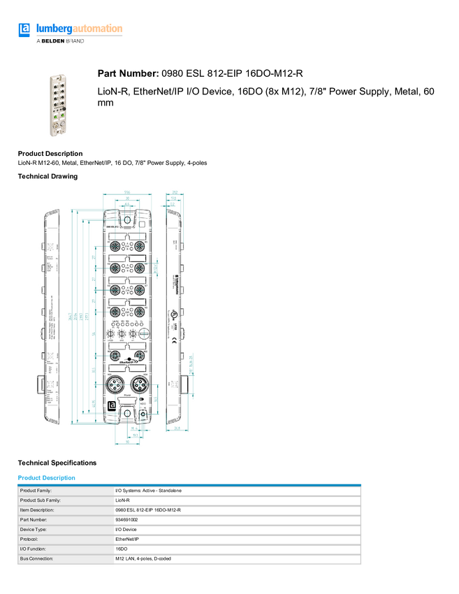 Rozdzielacz czujnik / element wykonawczy, aktywny Lumberg Automation 0980 ESL 812-EIP 16DO-M12-R 934 691-002 1 szt.