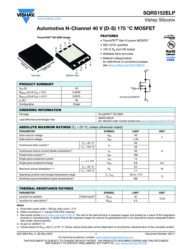 SQRS152ELP Automotive N-Channel 40 V (D-S) 175 °C MOSFET