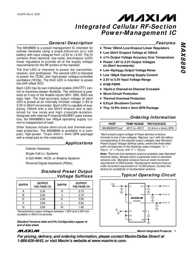MAX8890 Integrated Cellular RF-Section Power-Management IC