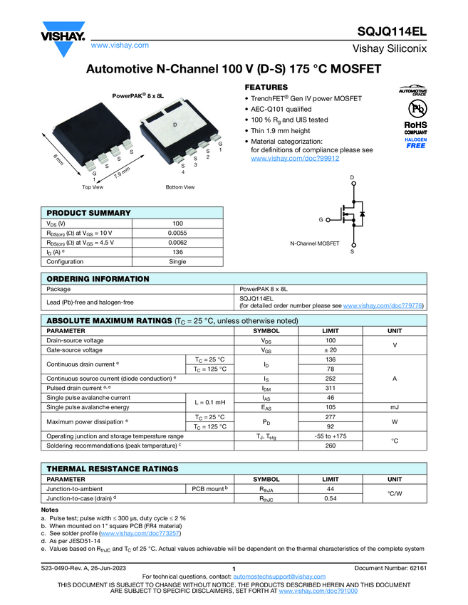 SQJQ114EL Automotive N-Channel 100 V (D-S) 175 °C MOSFET
