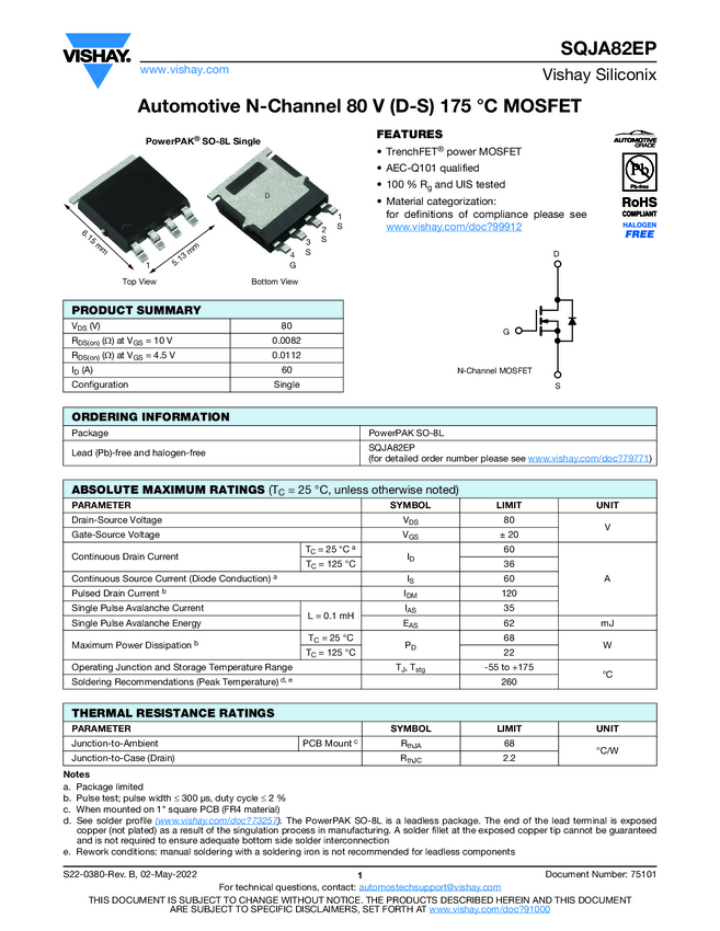 Automotive N-Channel 80 V (D-S) 175 °C MOSFET