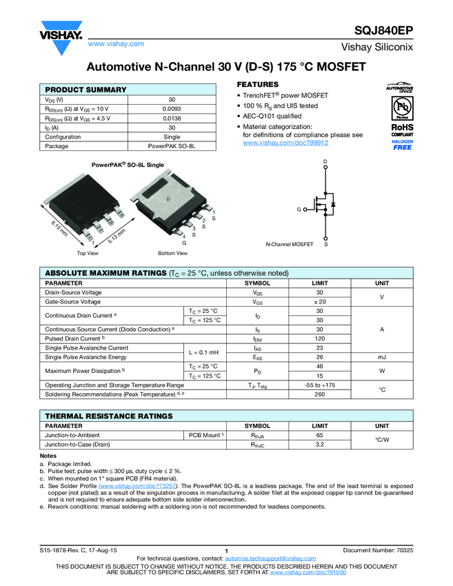 SQJ840EP Automotive N-Channel 30 V (D-S) 175 °C MOSFET