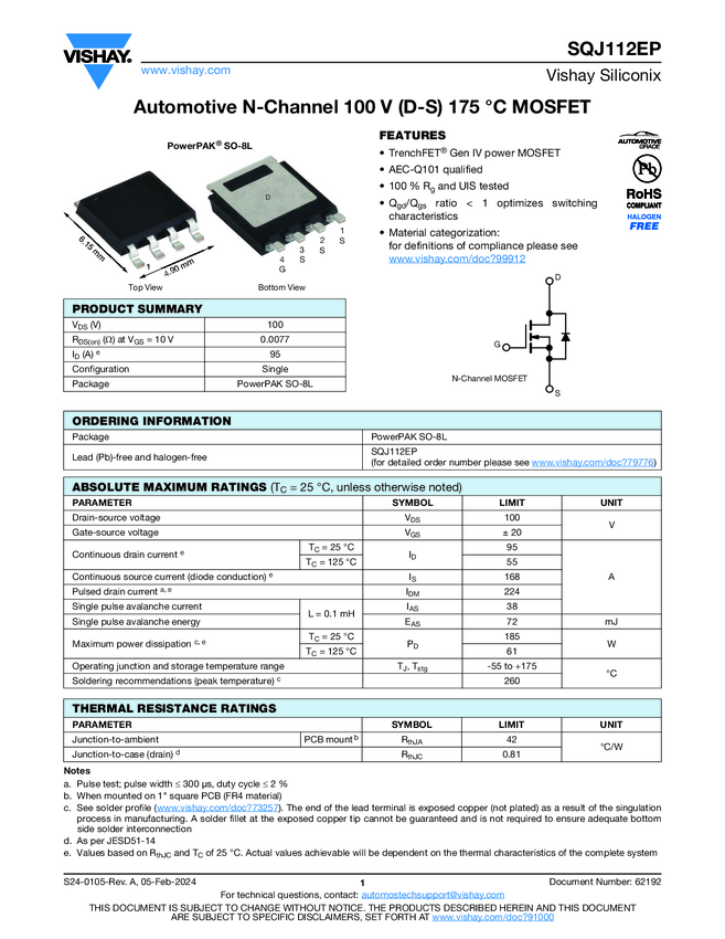 SQJ112EP Automotive N-Channel 100 V (D-S) 175 °C MOSFET