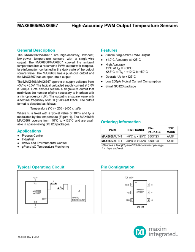 MAX6666 High-Accuracy PWM Output Temperature Sensors