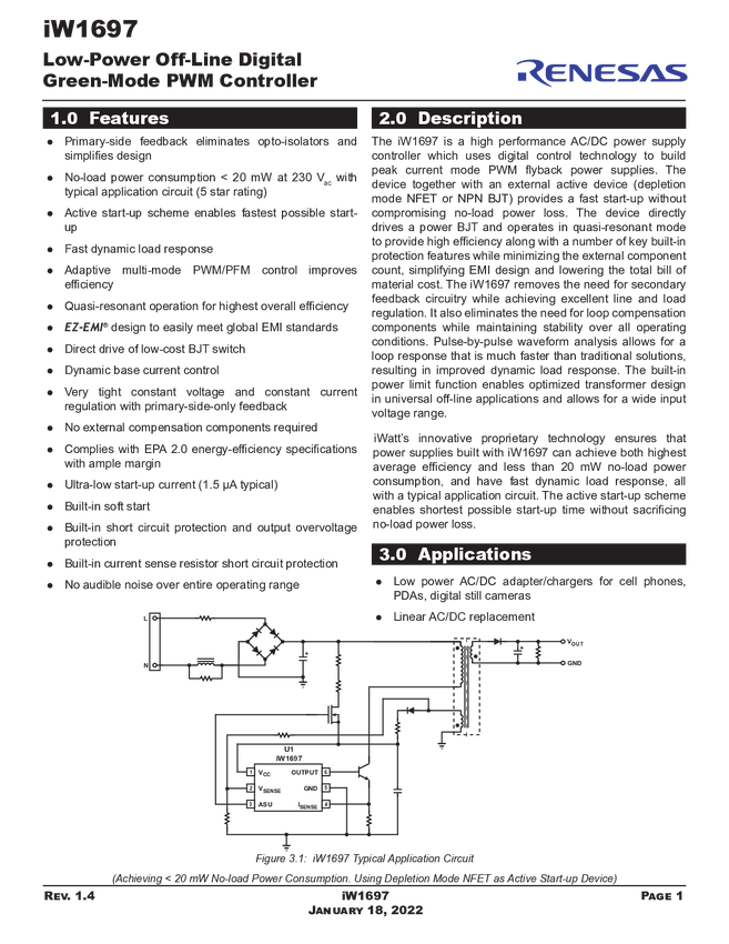 iW1697 PrimAccurate™ Off-Line Digital PWM Controller in a SOT-23 Package