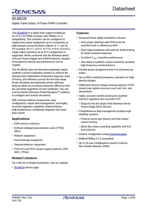 ISL68226 Digital Triple Output, 8-Phase PWM Controller
