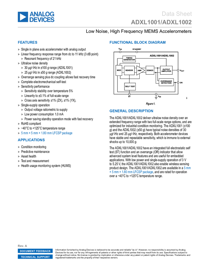 ADXL1002 Low Noise, High Frequency +/-50g MEMS Accelerometer