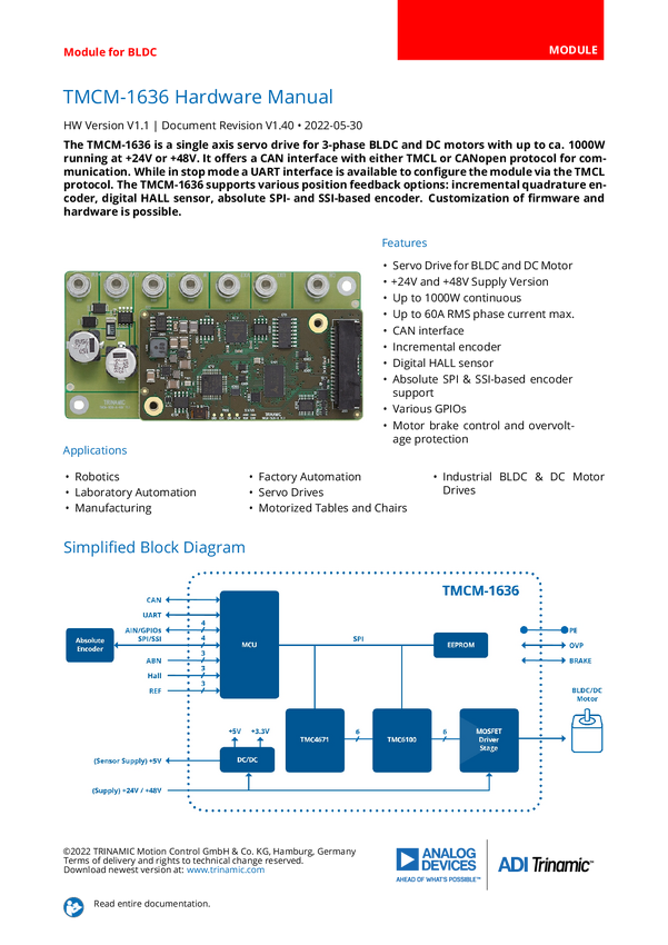 TMCM-1636 Servo drive for 3-phase BLDC motors 12 to 28V, 30A, with CAN Interface