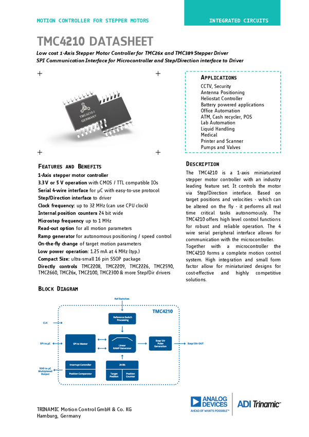 TMC4210 Stepper Motor Ramp Generator Controller with Serial Peripheral Interfaces a...